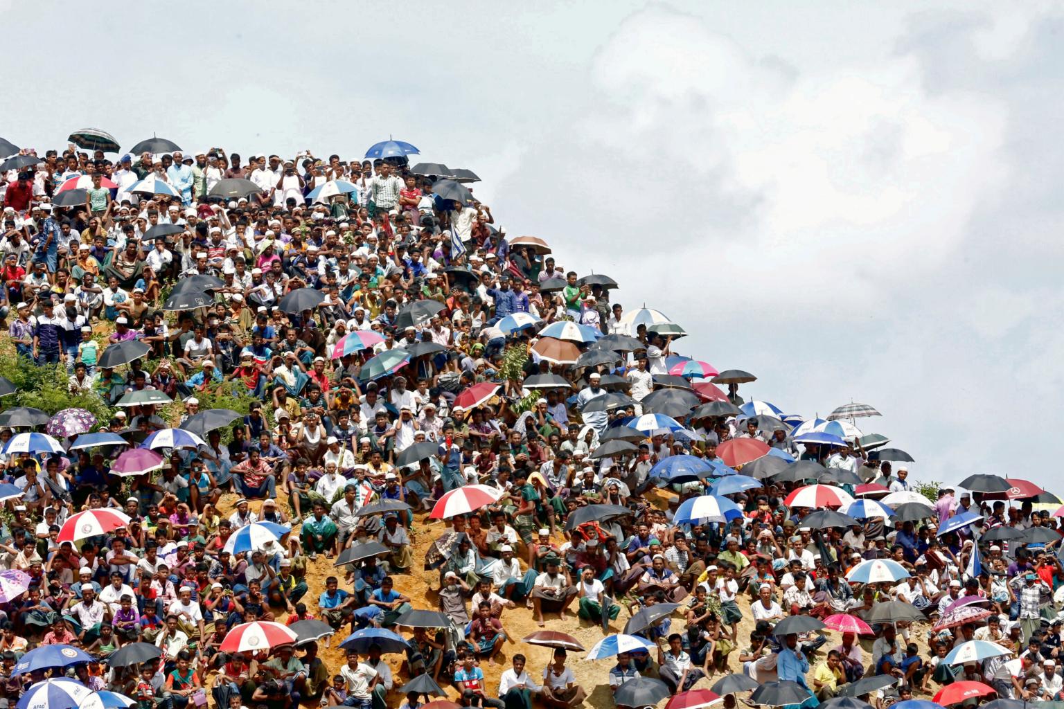 Rohingya refugees gather to mark the second anniversary of the exodus at the Kutupalong camp in Cox’s Bazar, Bangladesh, on Aug 25, 2019.
