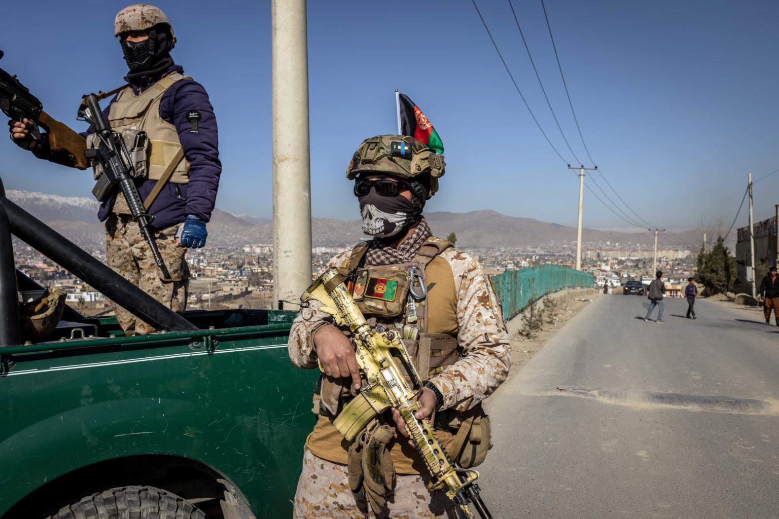 Afghan security forces on a road in Kabul on Jan 13, 2021.