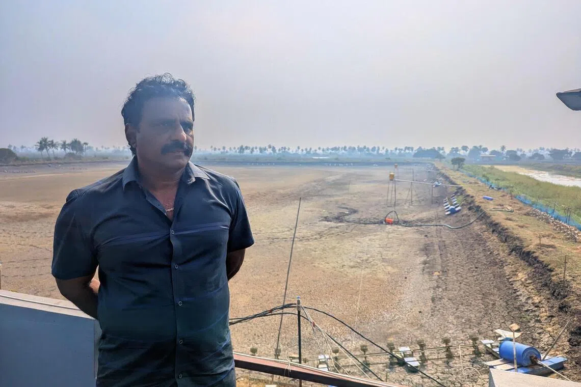 “Aquaculture is all I know,” the sfarmer Raju said. Behind him, acres of drained shrimp farms lay bare open to the sun, waiting for certainty.