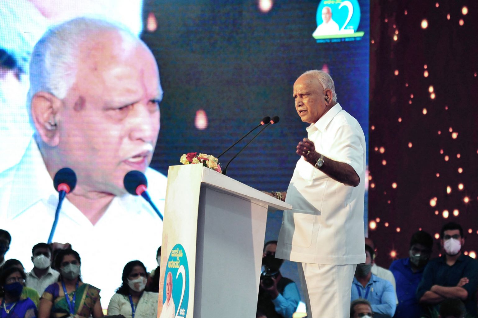 Karnataka chief minister BS Yediyurappa speaks at a function in Bangalore, on July 26, 2021.