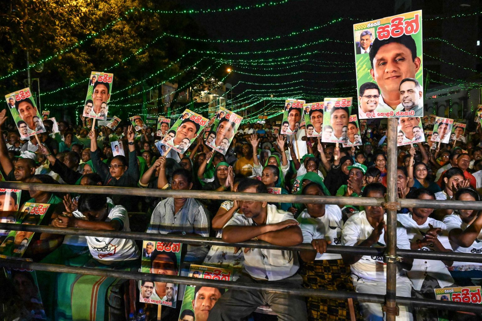 A photo taken on Nov 13 shows supporters of Sri Lanka's ruling party candidate Sajith Premadasa at the final election campaign rally in Colombo.