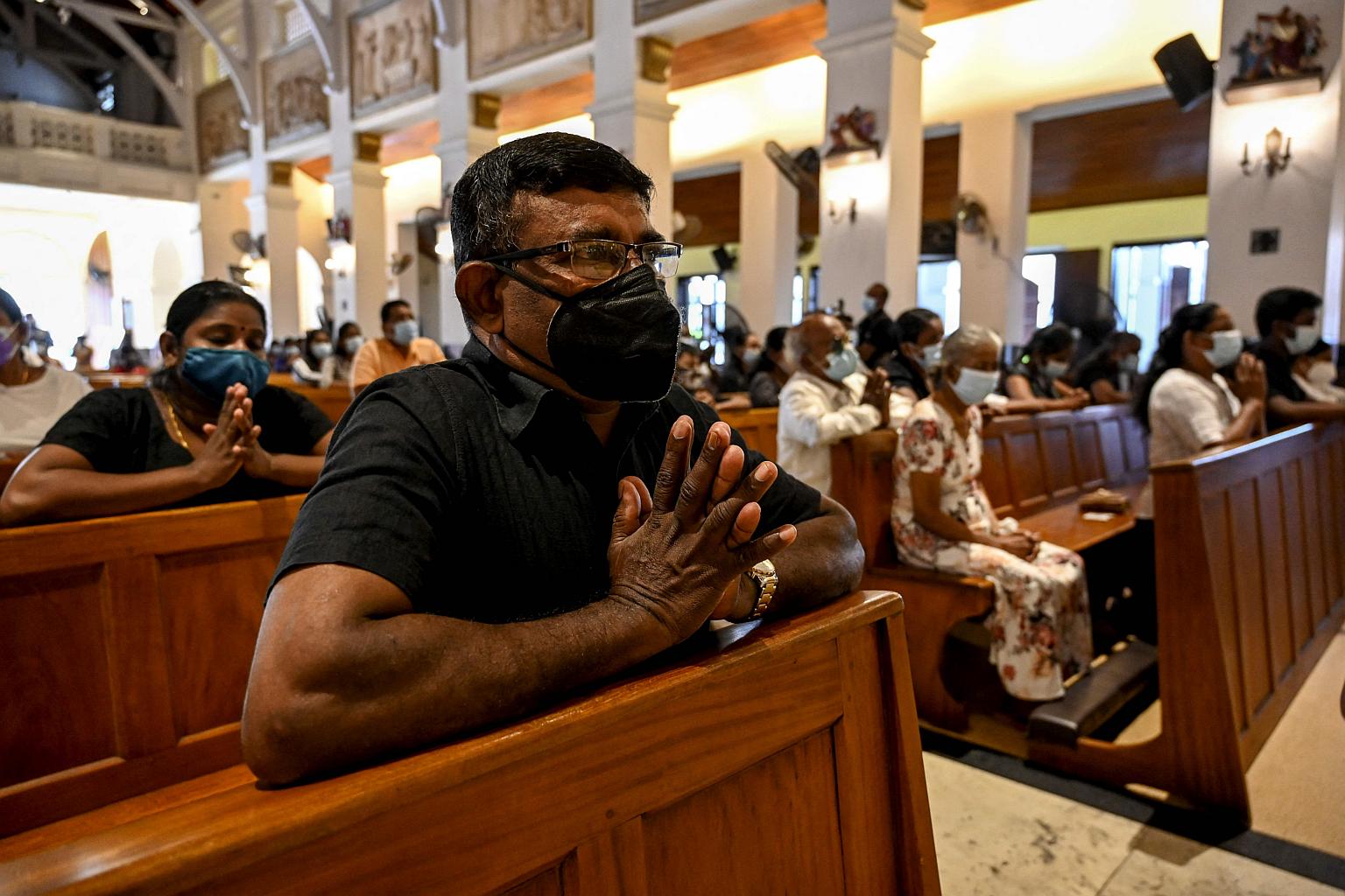 People praying during a service at St Anthony’s church to mark 30 months since the coordinated 2019 Easter Sunday bombings, on Oct 21, 2021.