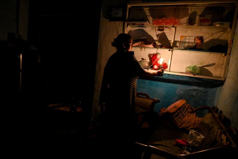 A woman uses a candle inside her house during a power cut in Colombo, on March 30, 2022.
