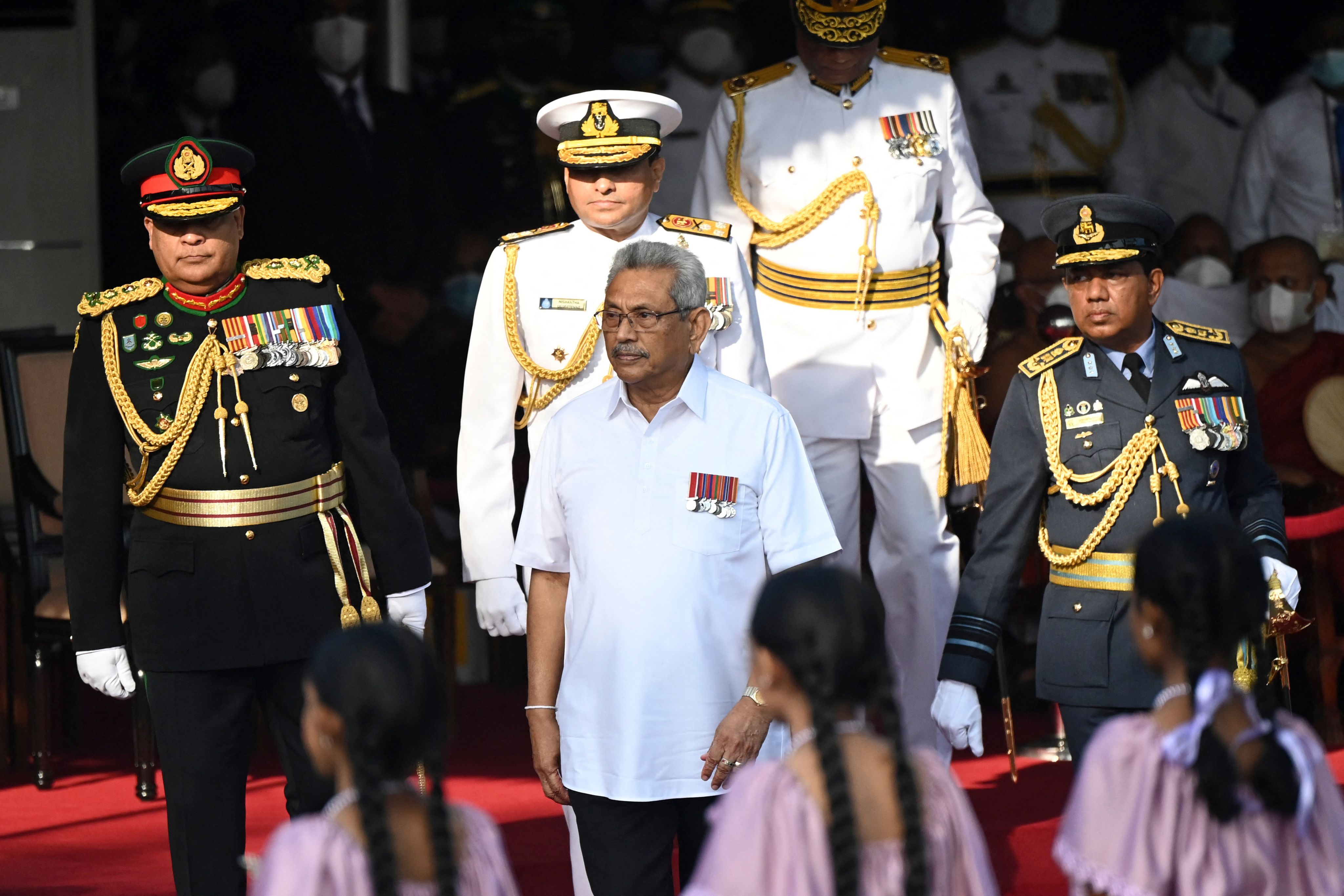Sri Lanka's President Gotabaya Rajapaksa (centre) during the country's 74th Independence Day in Colombo, on Feb 4, 2022.