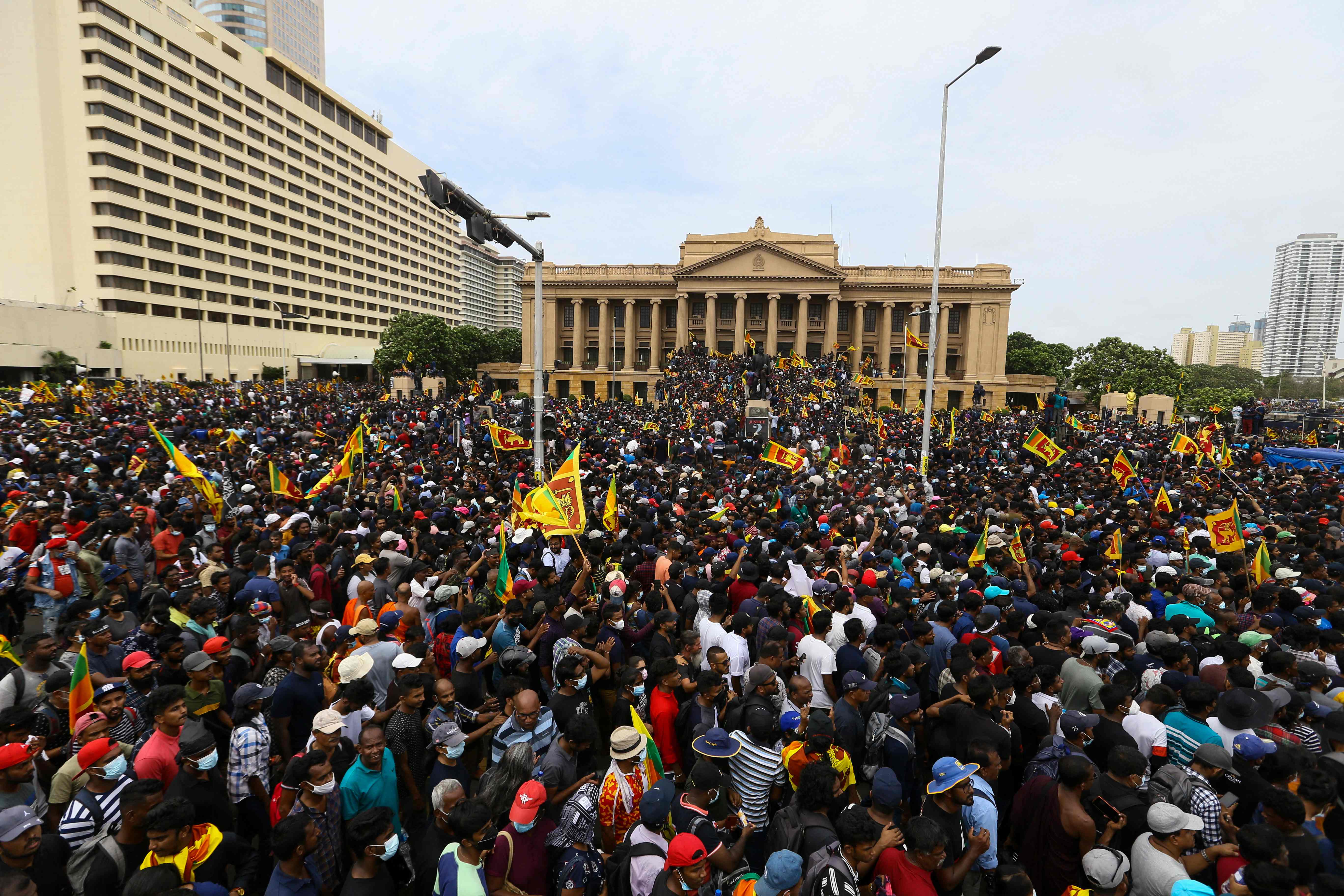 Soldiers and police were unable to hold back the crowd of chanting protesters demanding President Rajapaksa’s resignation, as public anger grows over the country’s worst economic crisis in seven decades.