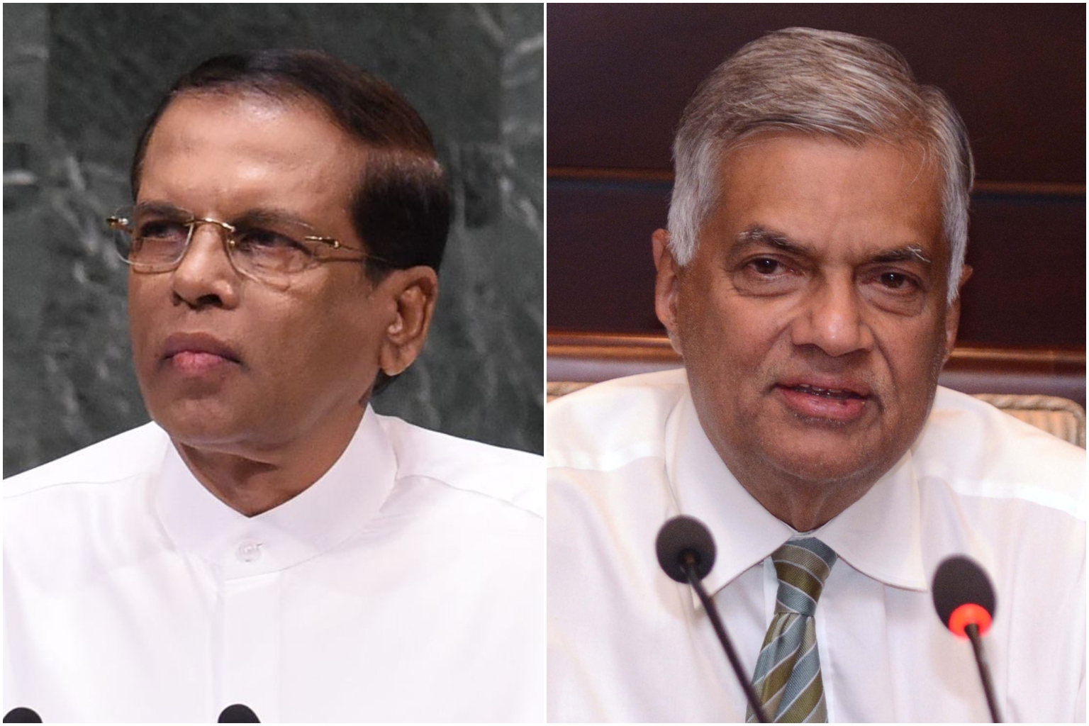 Sri Lankan President Maithripala Sirisena (left) has vowed he will never reappoint arch-rival Ranil Wickremesinghe as prime minister.