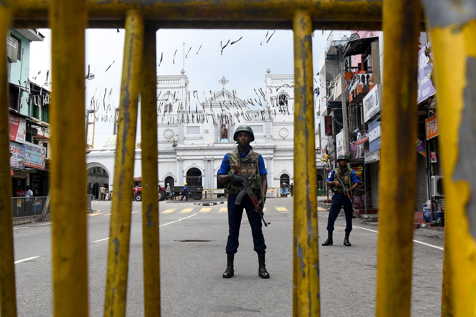 Sri Lankan soldiers stand guard outside St. Anthony's Shrine in Colombo on April 29, 2019, a week after a series of bomb blasts targeting churches and luxury hotels on Easter Sunday in Sri Lanka.