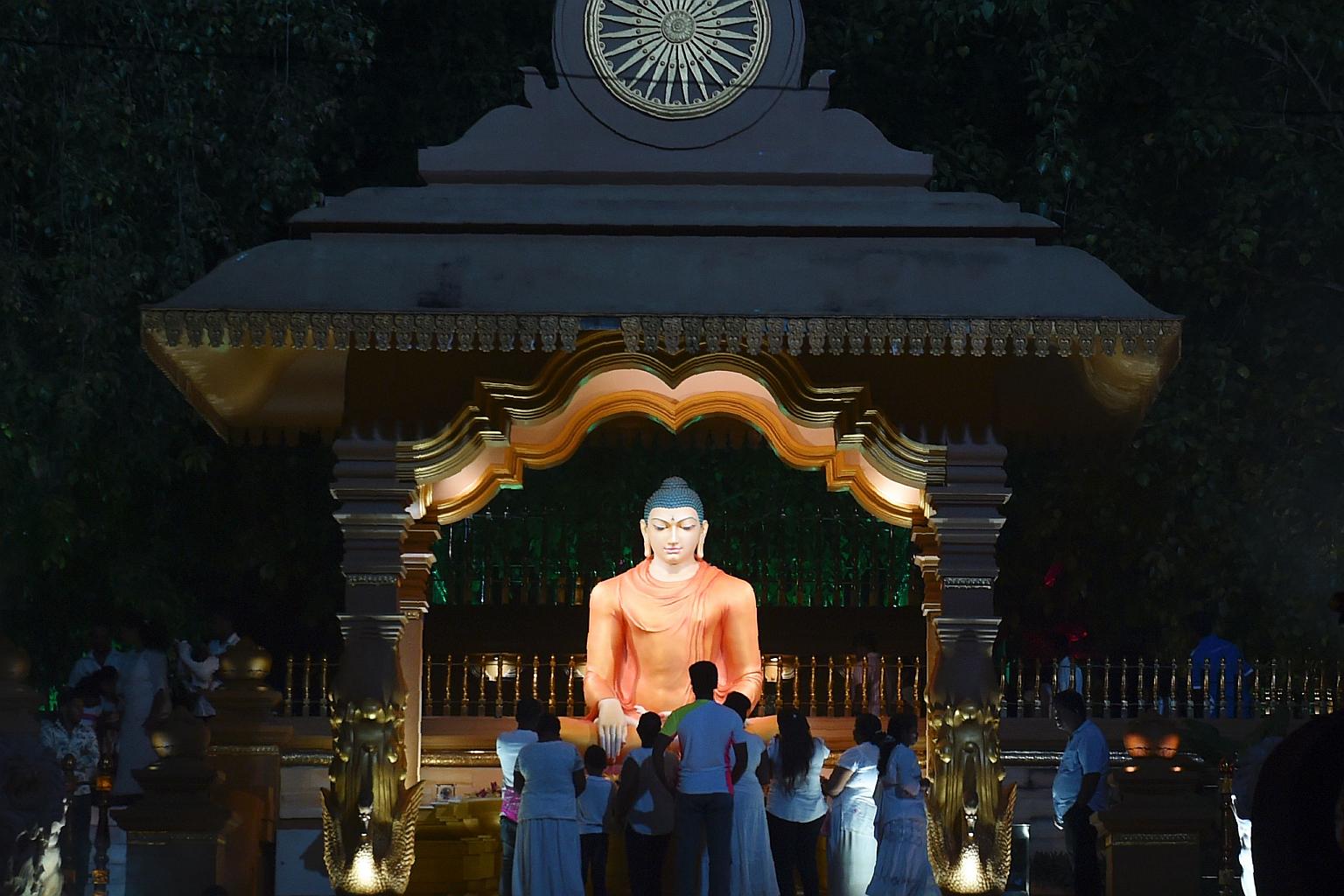 Sri Lankan Buddhists devotee pray during Poya, a full moon religious festival in a temple in the Colombo suburb of Kaduwela on July 8, 2017.