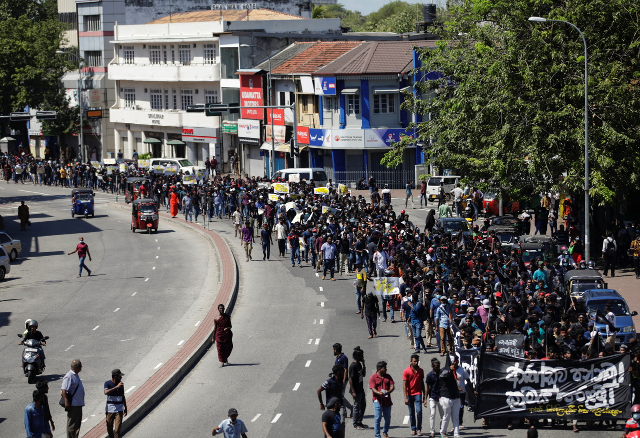 Demonstrators march towards Sri Lankan Prime Minister Mahinda Rajapaksa's residence in Colombo, Sri Lanka, on April 24, 2022.