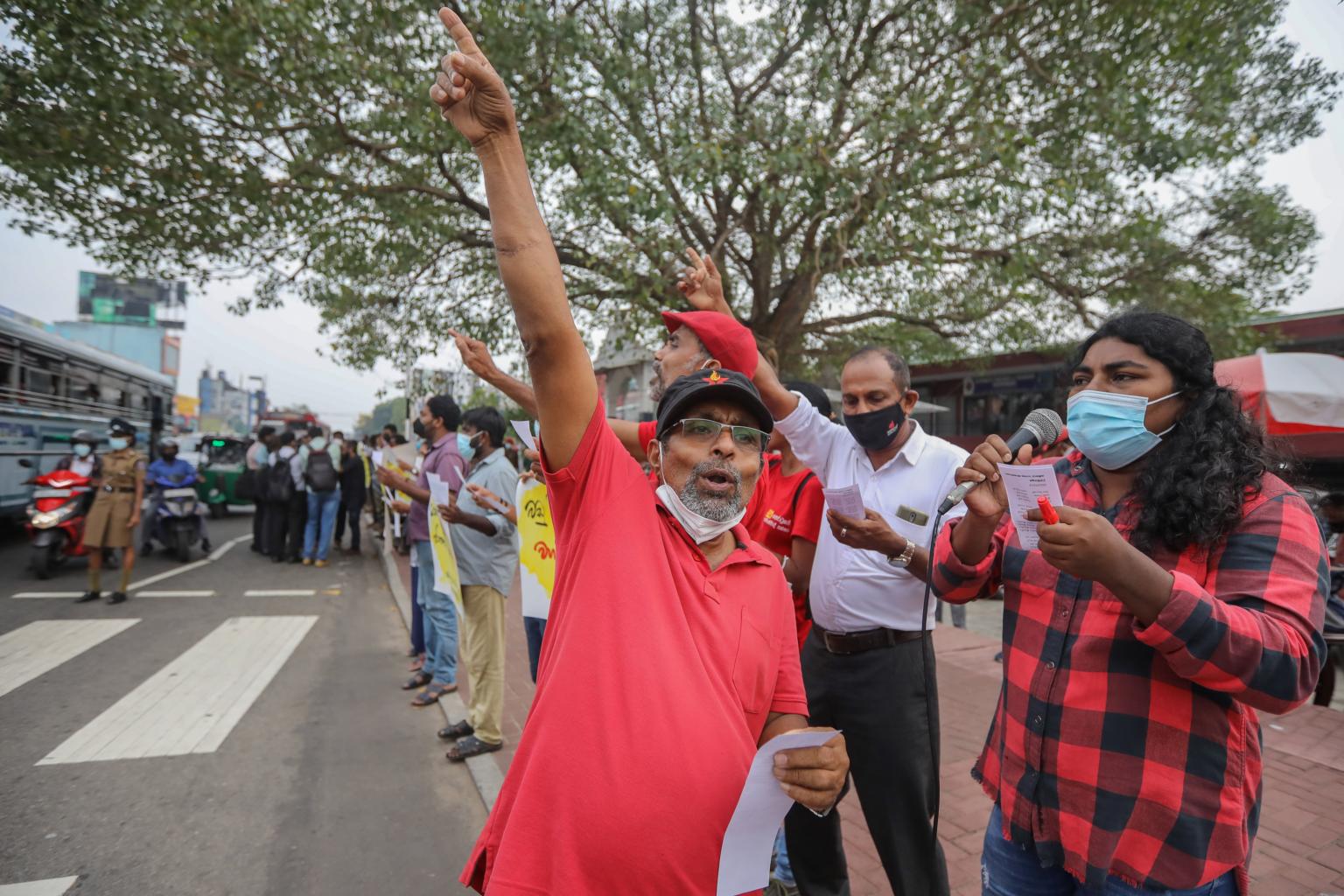 Members of Sri Lanka's Frontline Socialist Party during a protest at the suburb of Colombo, Sri Lanka, on March 14, 2022.