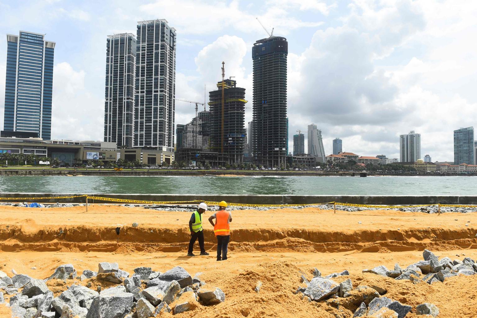 In a picture taken on Nov 8, 2019, labourers work at the construction site on reclaimed land as part of the Chinese-funded project for Port City in Colombo.