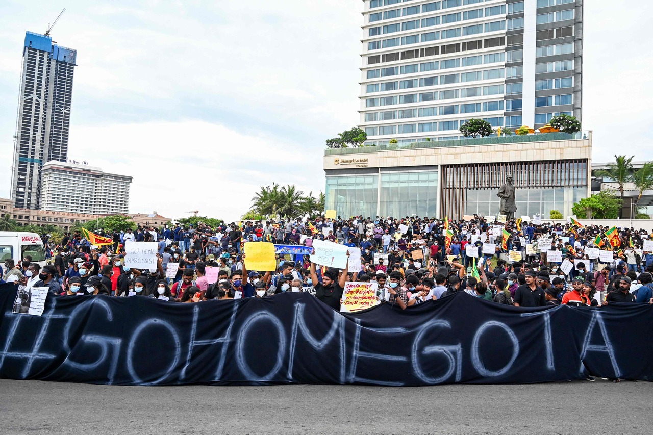 Protestors take part in a demonstration in Colombo on April 9, calling for President Gotabaya Rajapaksa to resign.