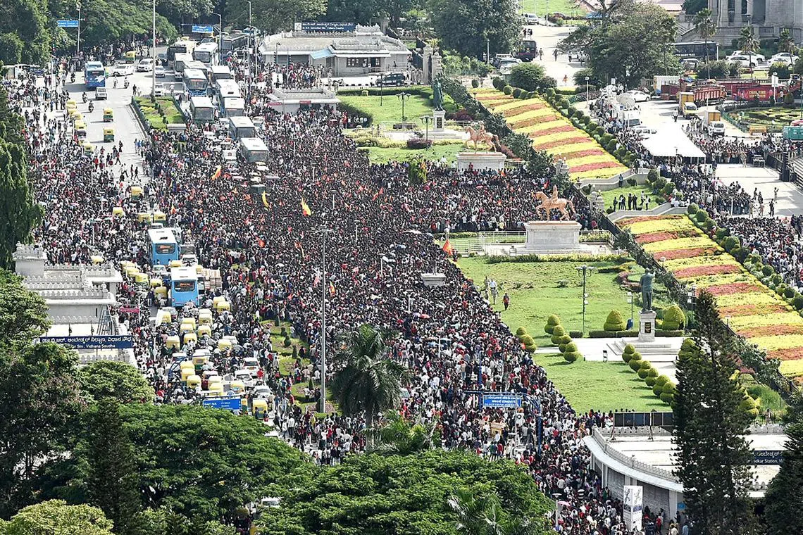 Karnataka Deputy Chief Minister D.K. Shivakumar said hundreds of thousands of people had flocked onto the streets and that police had been “finding it very difficult.”