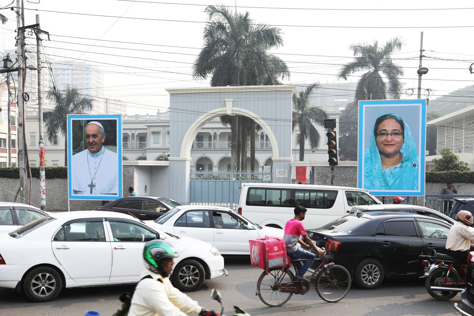 Heavy traffic moving in front of St Mary's Cathedral in Dhaka on Nov 28, 2017.