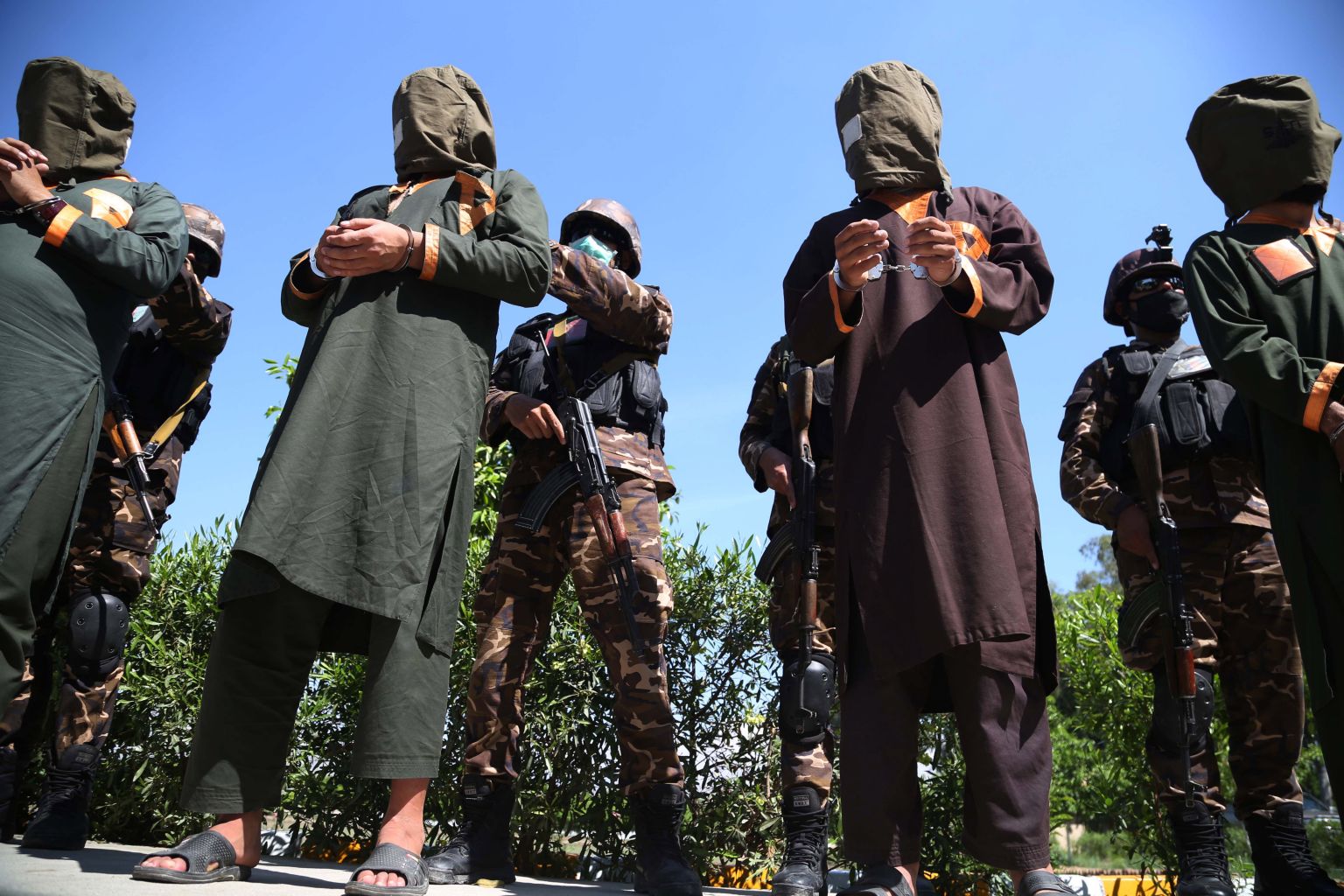 Afghan security officials escort a group of suspected militants in Jalalabad, Afghanistan.
