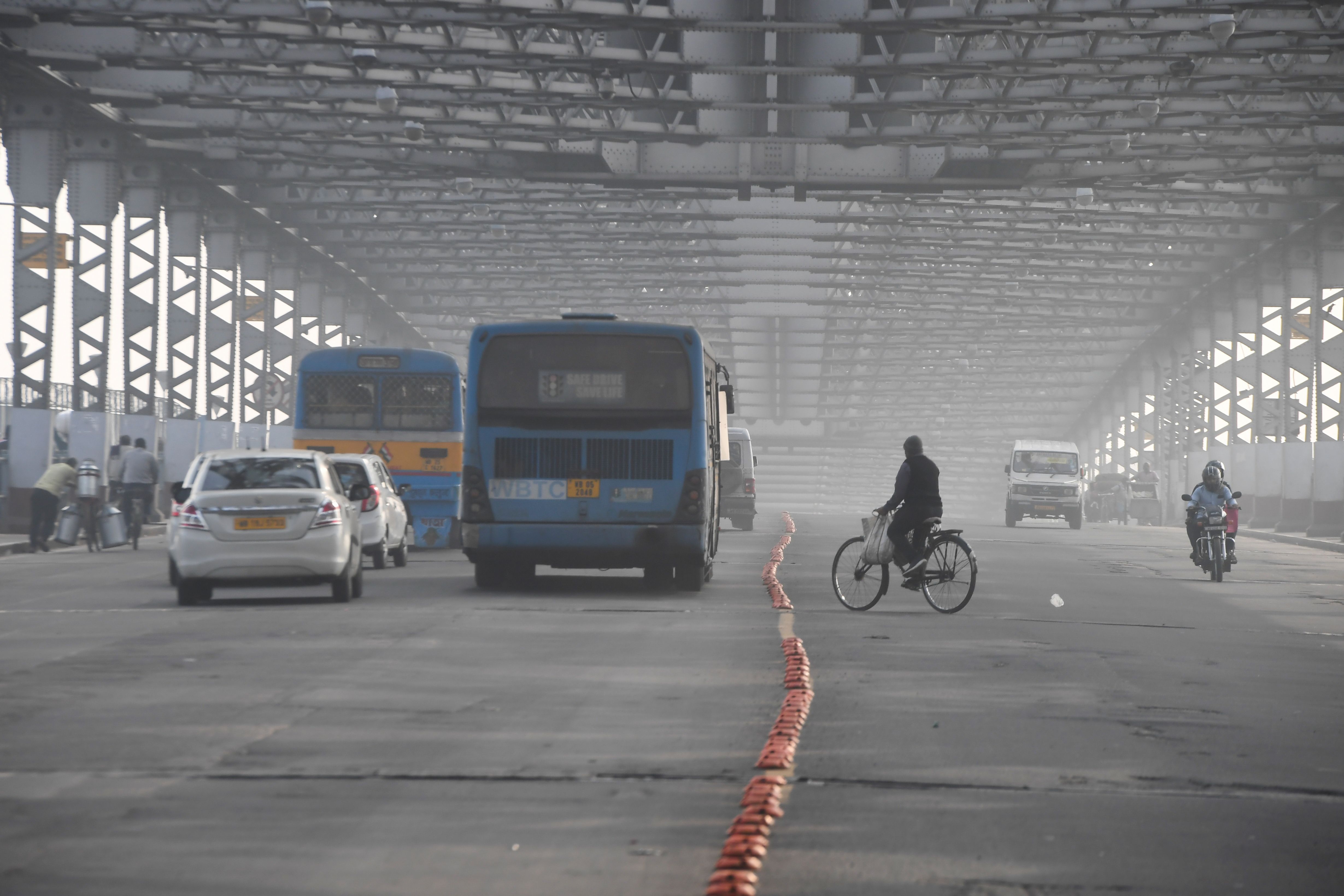 Commuters make way on the Howrah bridge during the nationwide general strike.