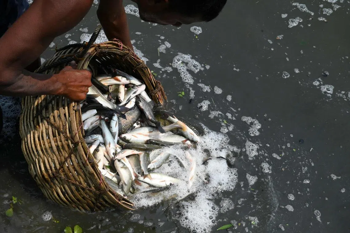 Fish farmer Sujit Mondal, 41, said that compared with 2022 “production has reduced” because of “murky water”.