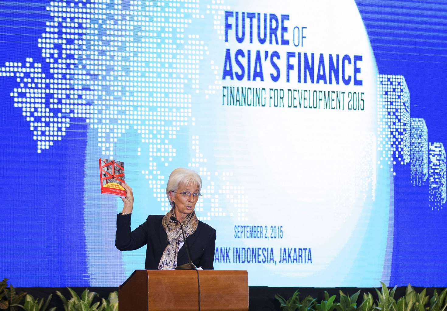 IMF Managing Director Christine Lagarde participating in the Asia Finance Conference at the Bank of Indonesia, in Jakarta, Indonesia on Sept 2, 2015.