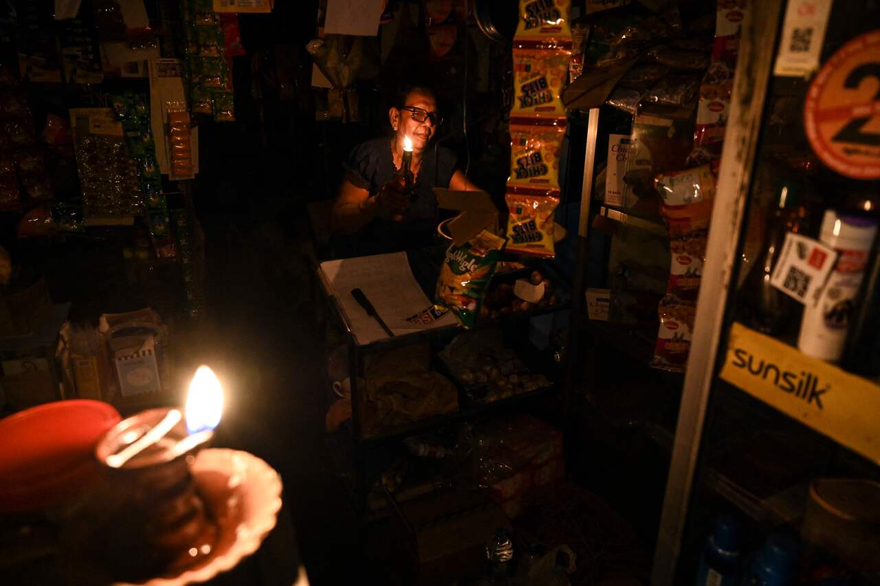 <p>A vendor waiting for customers at her shop during a power outage in Colombo on March 2, 2022. (Photo by Ishara S. KODIKARA / AFP)</p>