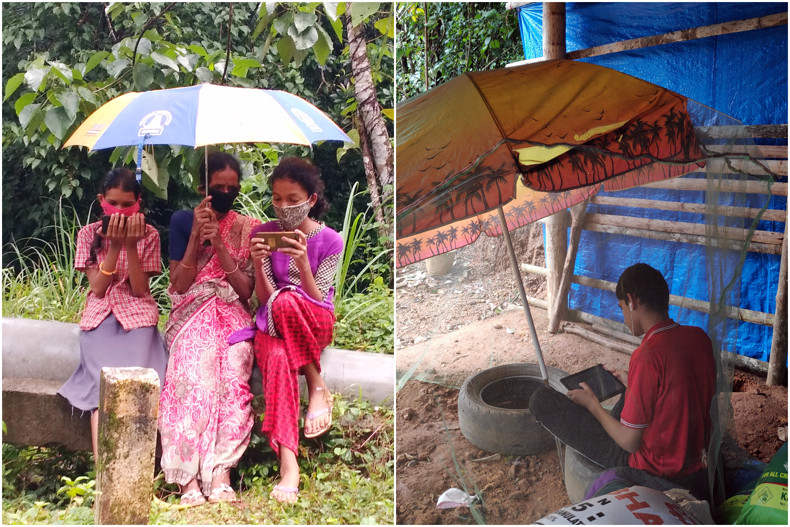 In the hilly, forested Dakshina Kannada district, it is common to see groups of children bent over a single smartphone at bus stops, temple courtyards, alongside highways, or near shop clusters, where there is a strong 4G connection.