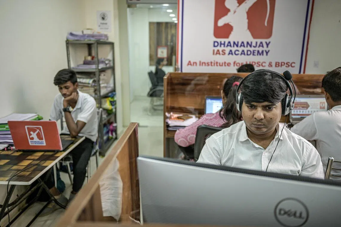 Thousands of students take preparatory classes in Patna, in the state of Bihar, for standardised tests for government jobs.