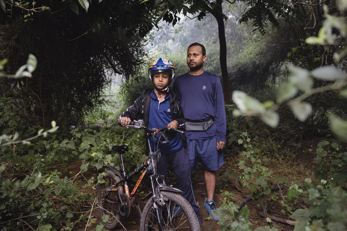 Among the more vulnerable is Mr Sahu’s nine-year-old son, who follows him on his bicycle every morning.