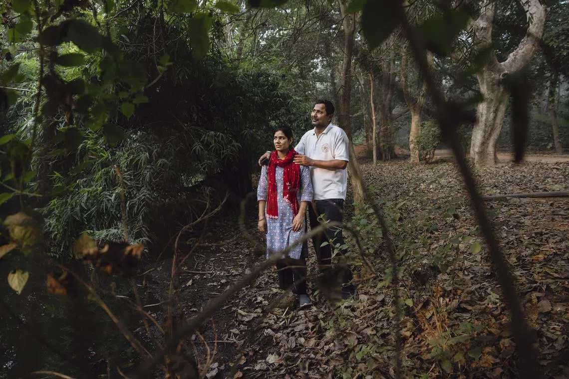 Mr Jaipal Tanwar and his wife Anita in a park in New Delhi on Nov 7, 2023.