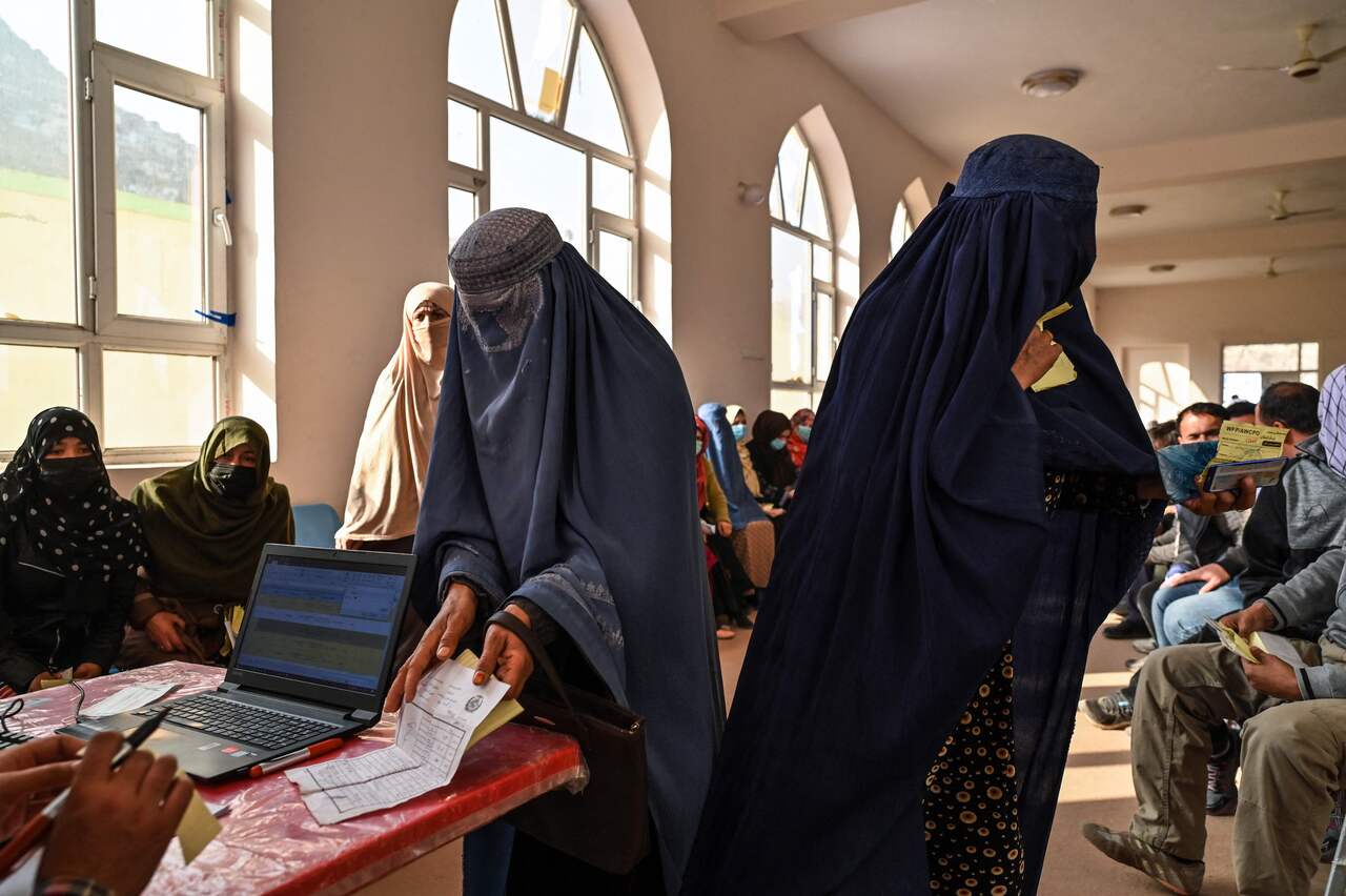 A UN World Food Programme cash distribution in Kabul on Nov 29, 2021.