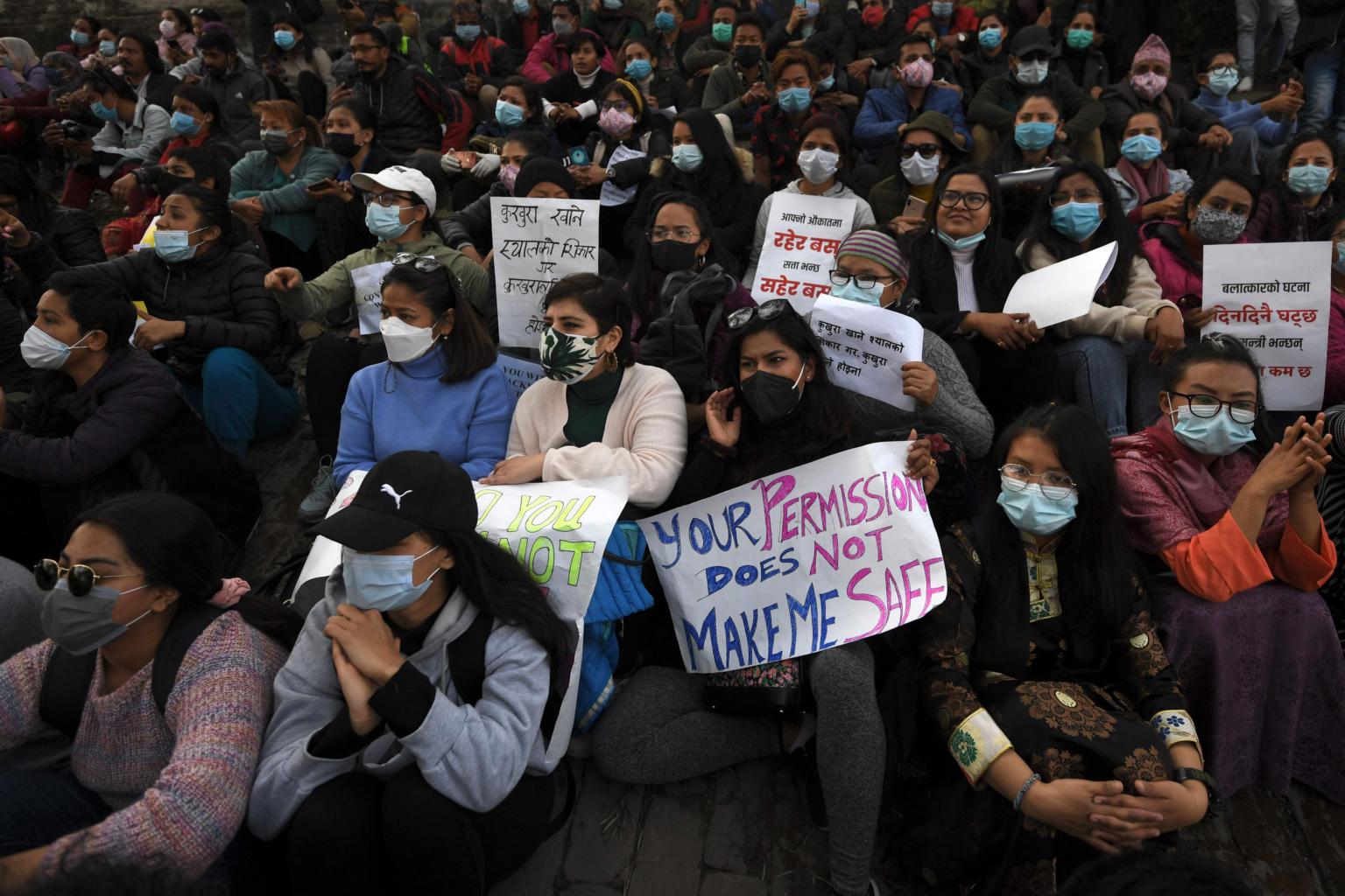Hundreds of women gathered at the Maitighar Mandala, a monument in Kathmandu, on Feb 12 to protest against the proposed legislation, as part of a women's march to highlight issues of rape, abuse, and women's rights in the Hindu-majority country.