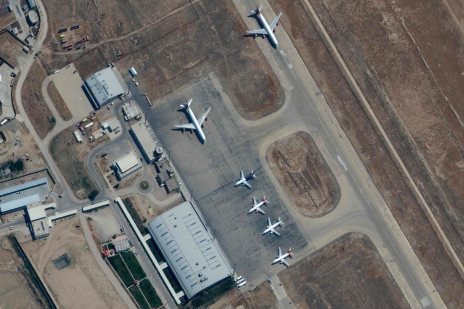 In a satellite image taken on Sept 3, 2021, planes can be seen near the main terminal of the airport in Mazar-i-Sharif, Afghanistan.
