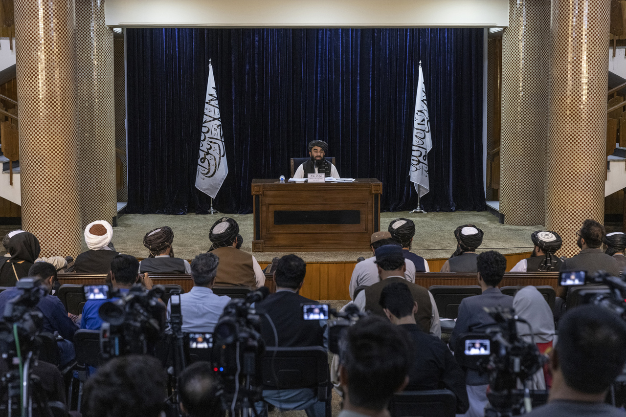 Taliban spokesman Zabihullah Mujahid announces an acting cabinet for the new government during a news conference in Kabul on Sept 7, 2021.