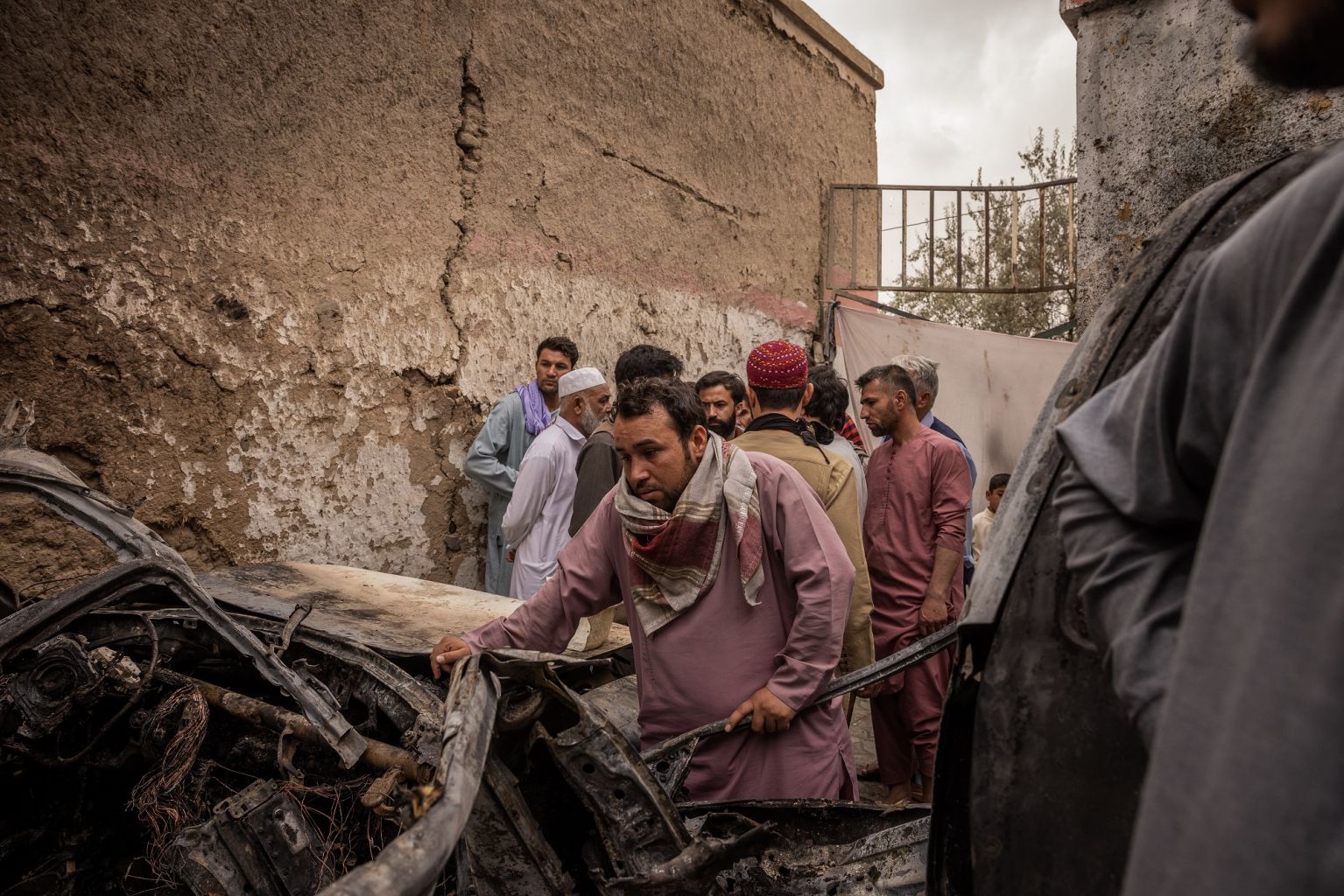 A relative views a vehicle destroyed in an American drone strike that killed 10 people in Kabul, Afghanistan, on Aug 30, 2021.