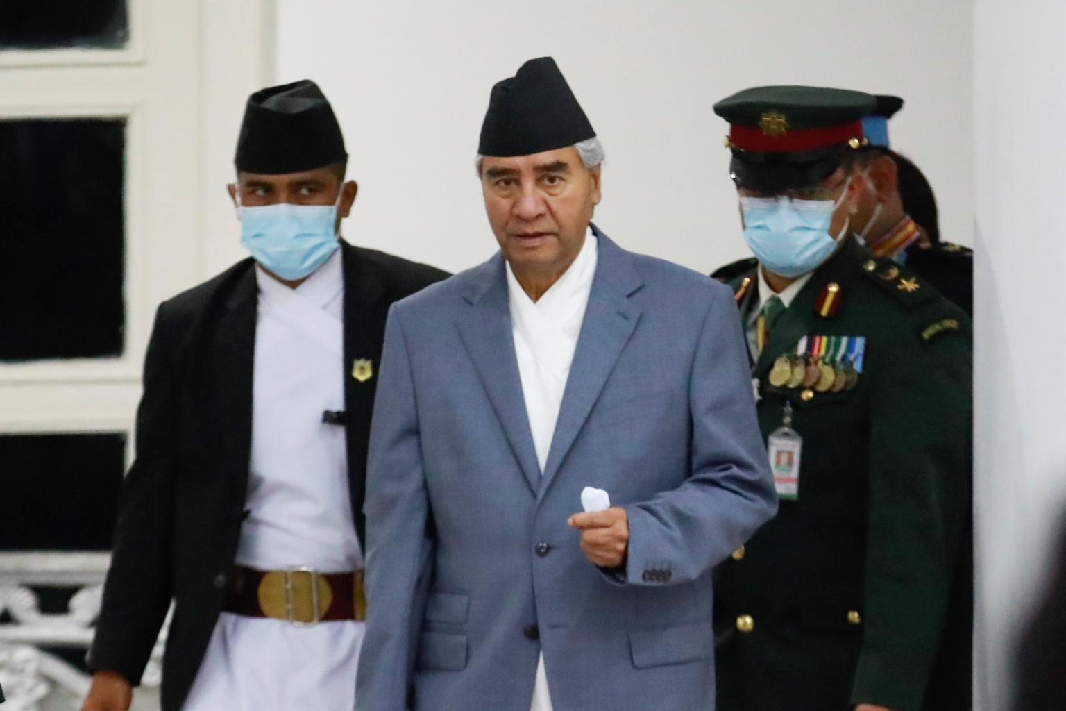 Newly appointed Prime Minister Sher Bahadur Deuba after formally assuming office at Singha Durbar office complex in Kathmandu on July 13, 2021.