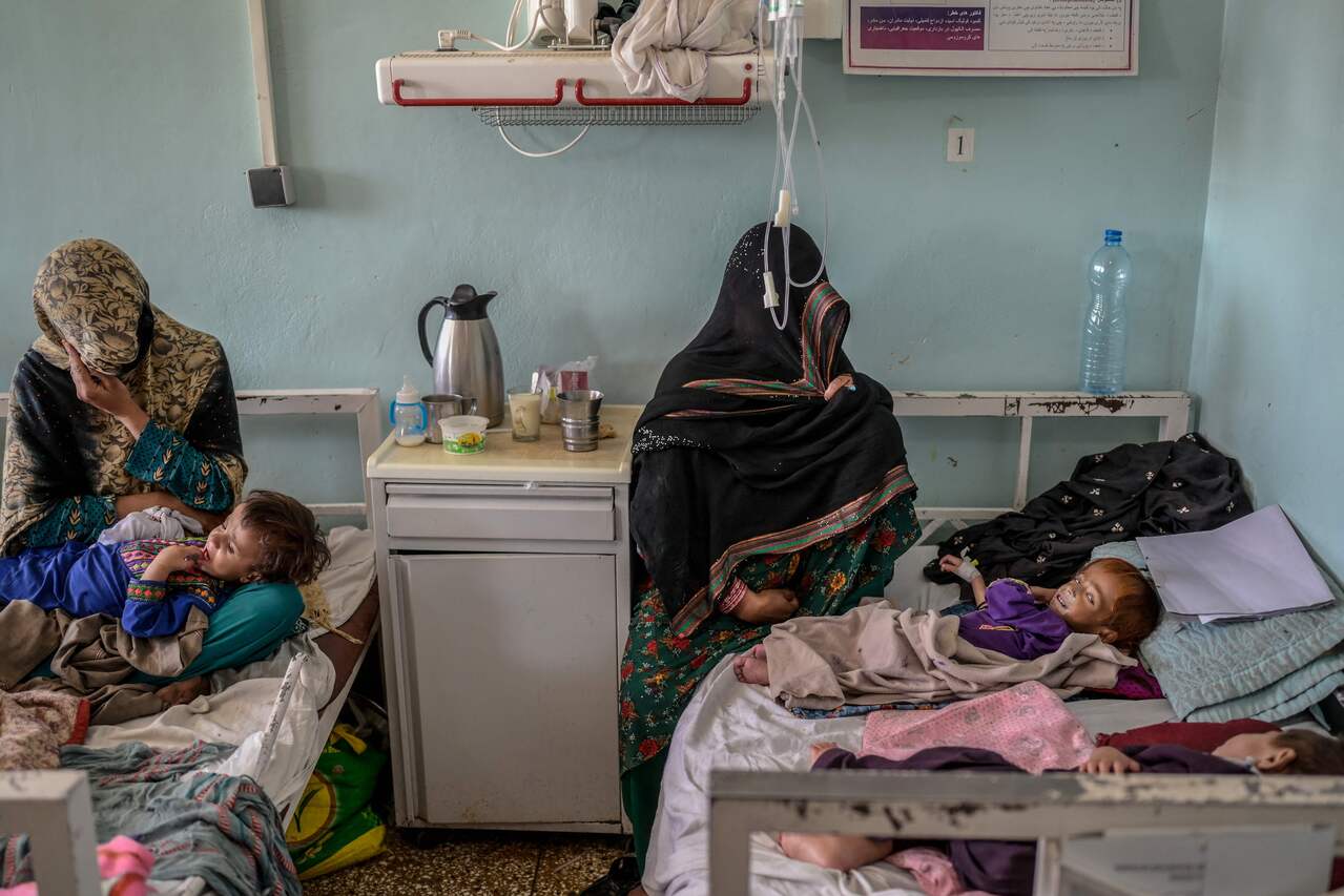 KABUL (AFP) - At an overcrowded hospital in Afghanistan, the few remaining doctors and nurses try urgently to treat skeletal babies and malnourished children packed side by side on beds.