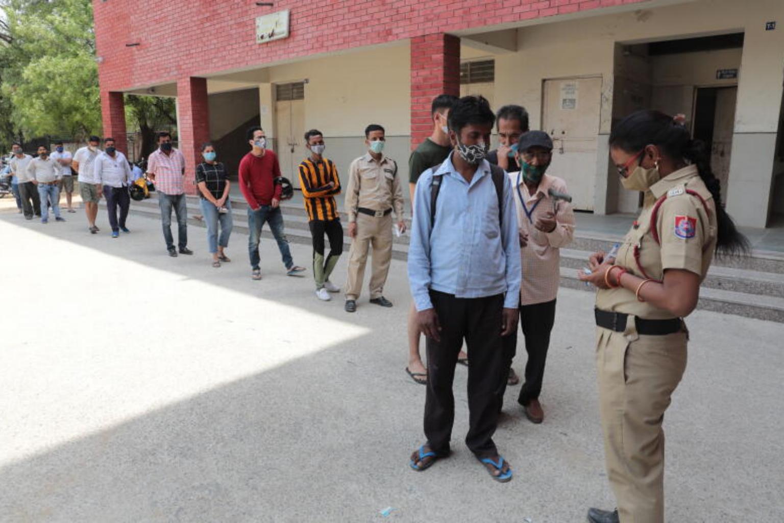 People queueing to take a Covid-19 swab test in New Delhi, India, on April 15, 2021.