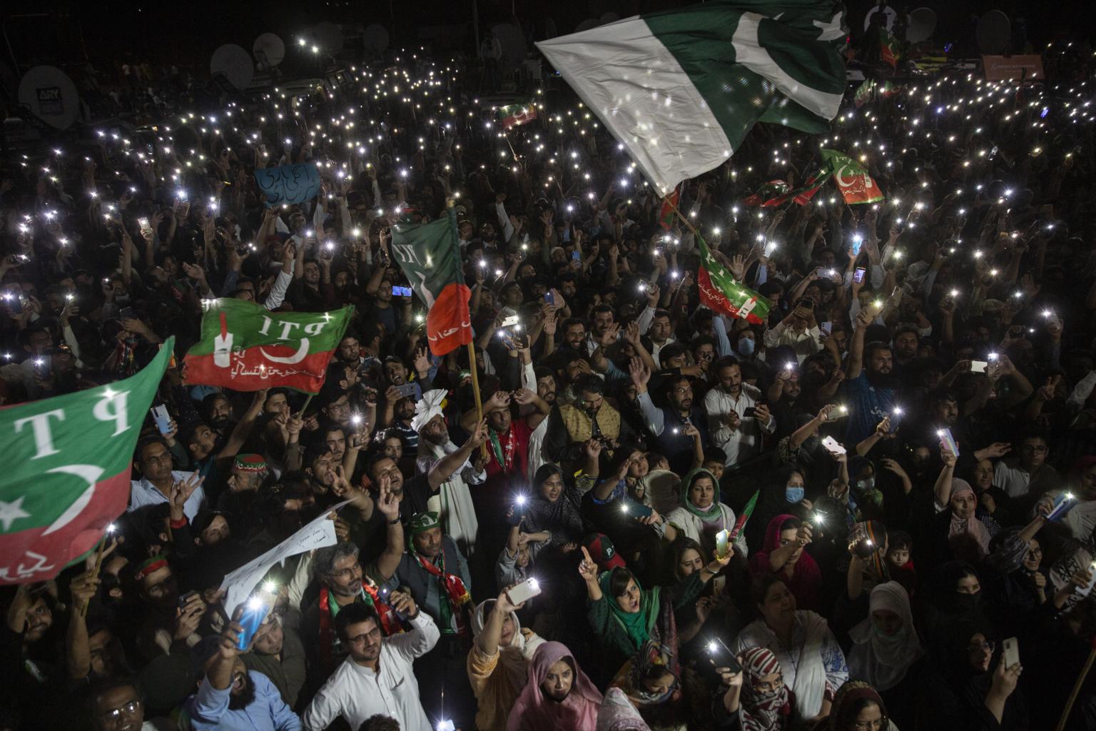Supporters at a rally for Pakistani Prime Minister Imran Khan's Tehreek-e-Insaf party in Islamabad on April 4, 2022.
