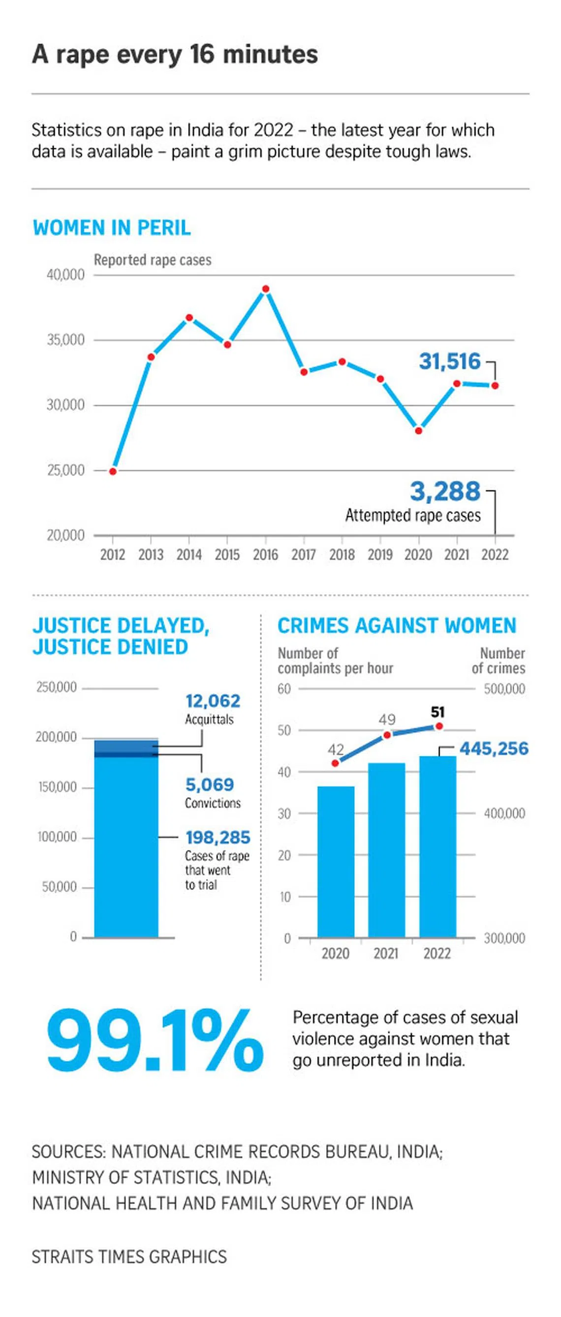 Only 2.56 per cent of all rape cases led to the accused being convicted in 2022, according to a Ministry of Statistics report. For cases involving attempt to rape, the conviction rate was just 0.92 per cent.