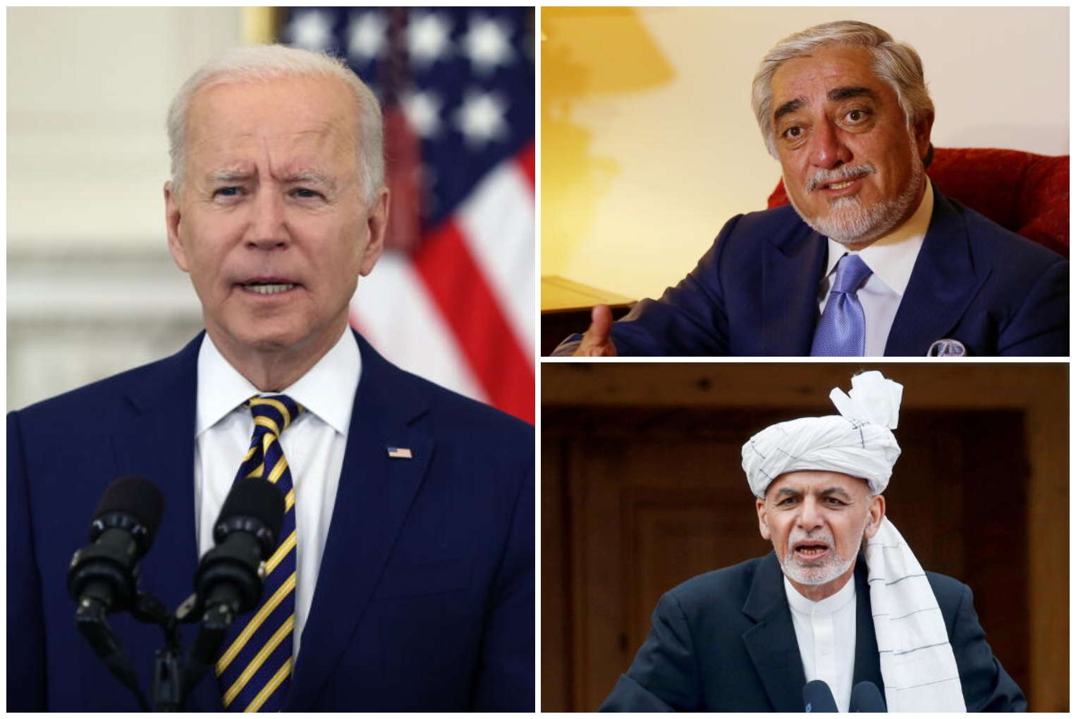(Clockwise from left) US President Joe Biden, Dr Abdullah Abdullah, chairman of Afghanistan's High Council for National Reconciliation, and Afghan President Ashraf Ghani.