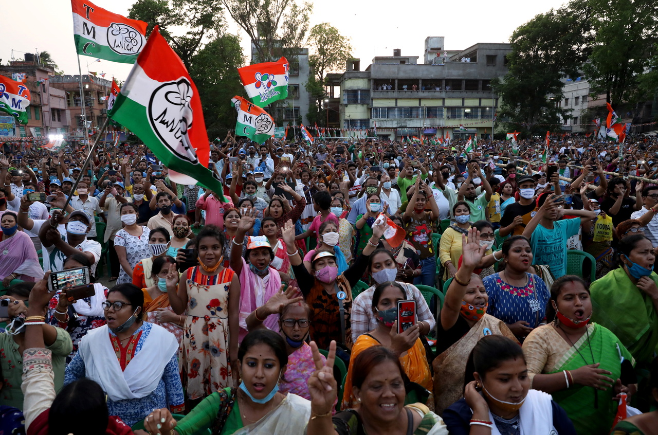 Supporters of Chief Minister Mamata Banerjee at an election campaign rally in Kolkata on April 7, 2021.
