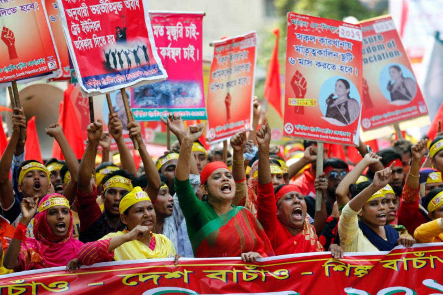 Protesters shout slogans demanding reasonable wages and workers' safety during an International Labor Day rally in Dhaka, Bangladesh May 1, 2017.
