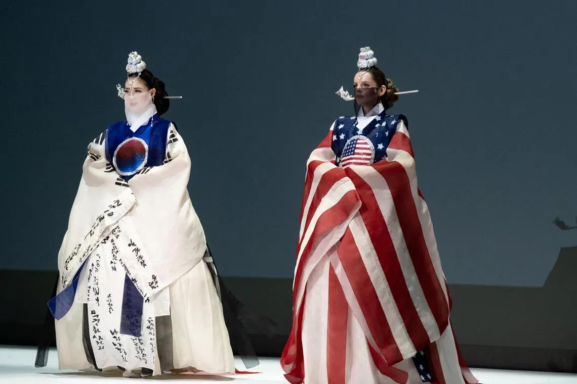 The South Korean Embassy in the US staged a fashion show in October marking the anniversary, with models in traditional Korean dresses featuring South Korean and US flags.