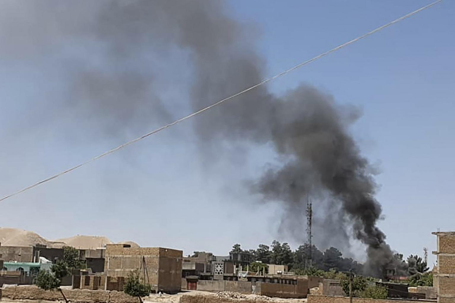 Smoke rising from houses amid fighting between Afghan forces and Taleban fighters in Qala-i-Naw on July 7.