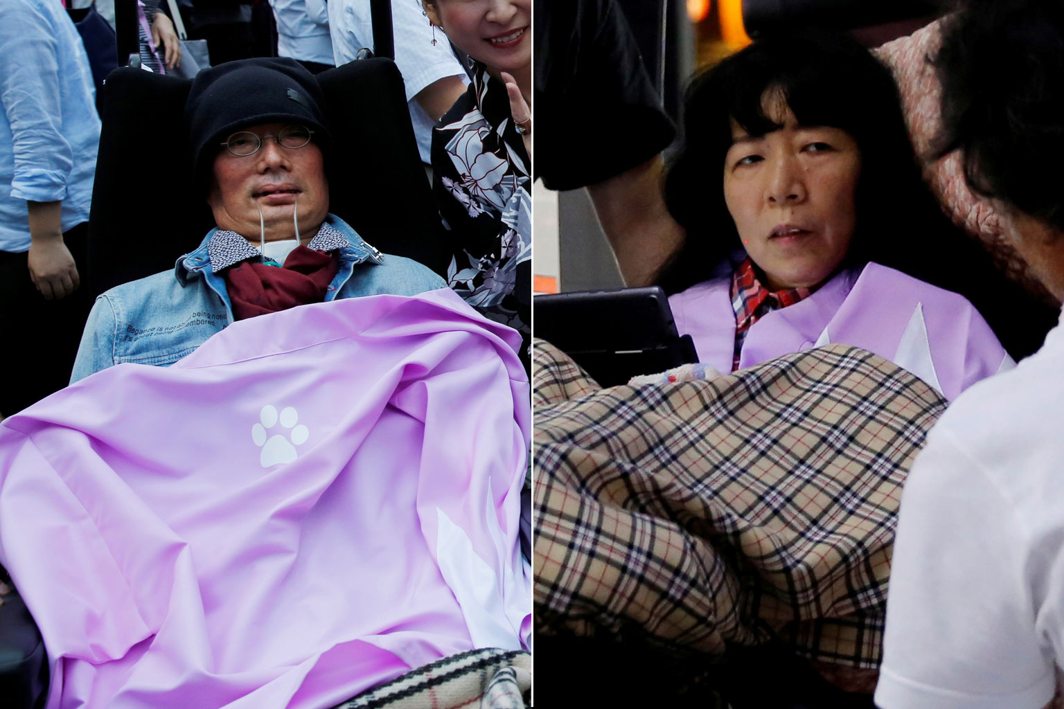 Yasuhiko Funago (left) and Eiko Kimura, severely disabled candidates won seats in Japan's upper house vote.