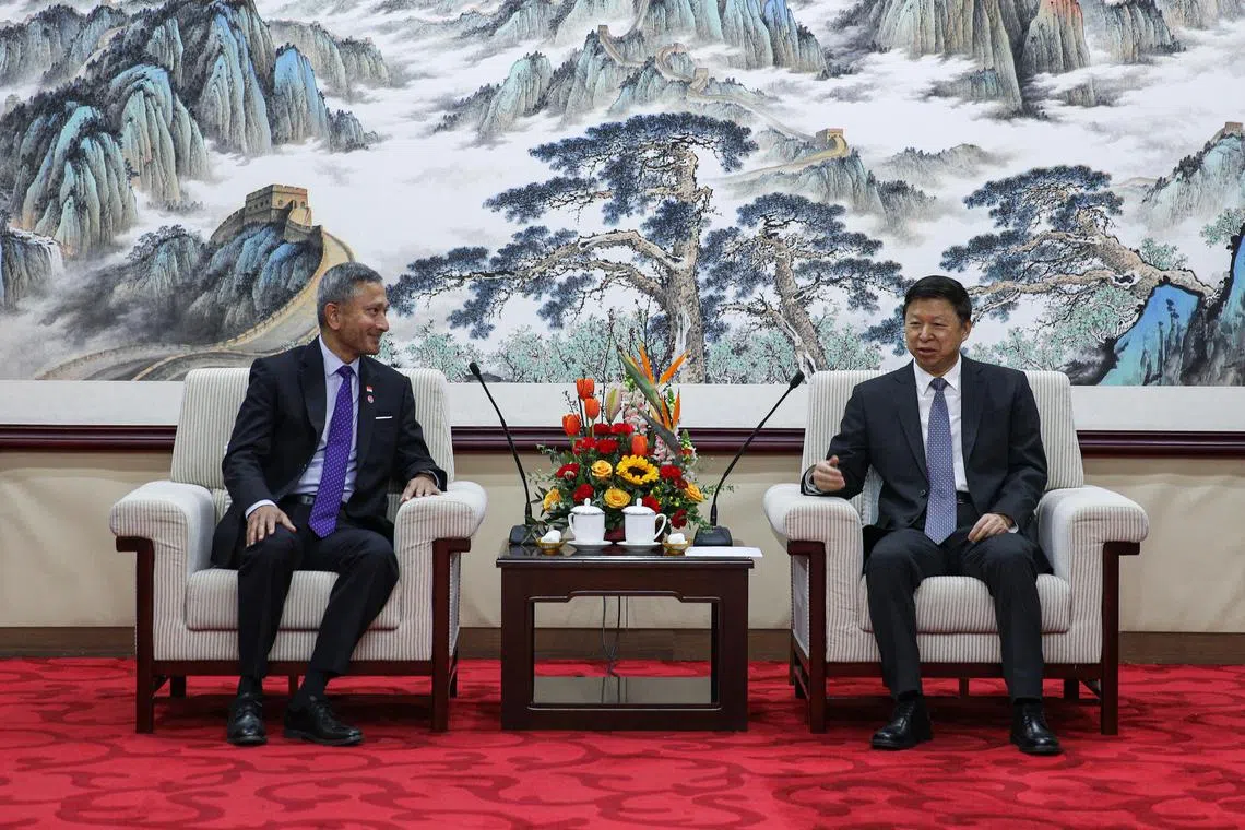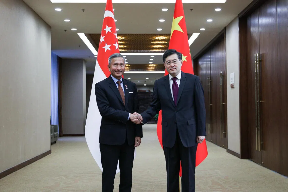 The two men spent nearly four hours together on Monday, when Mr Qin also hosted Dr Balakrishnan to dinner.