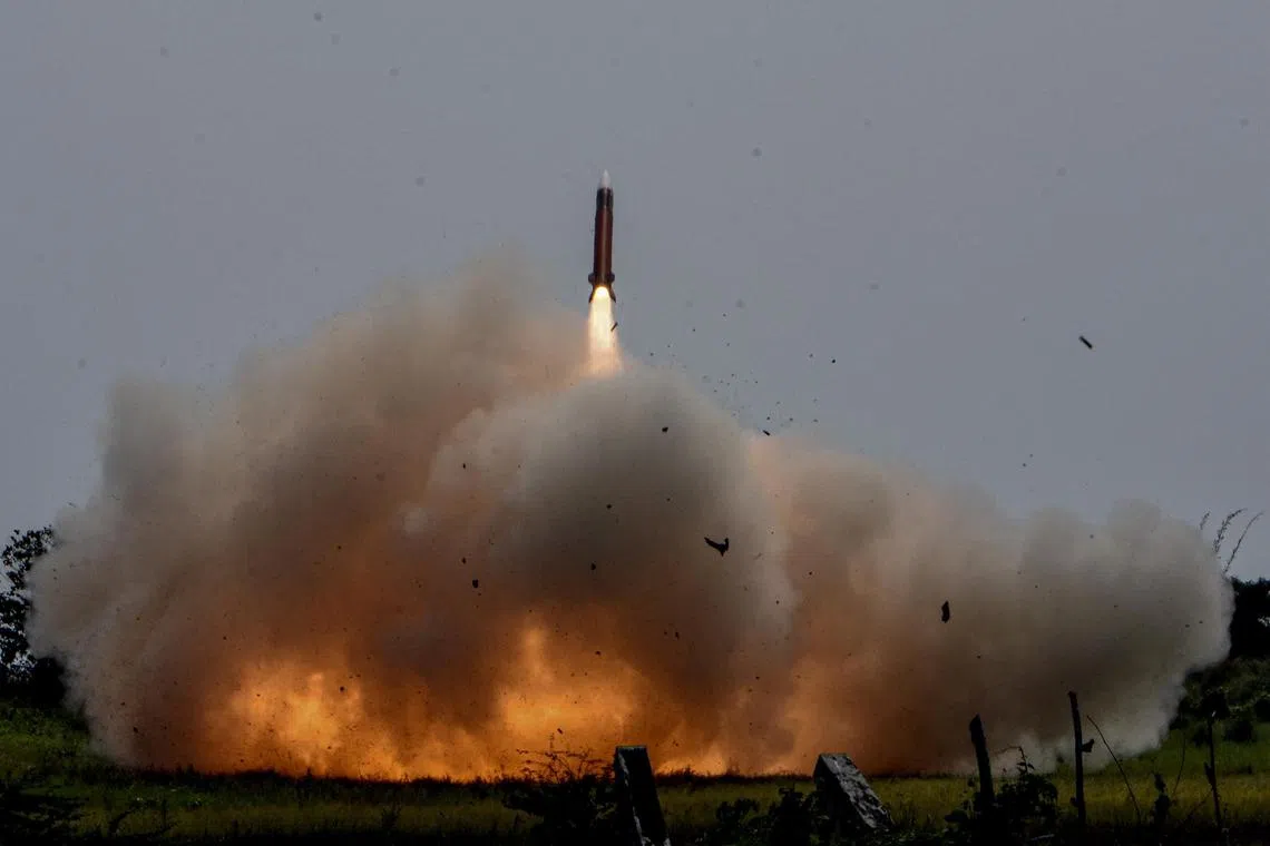 A Patriot missile system firing at a target during war drills between Philippine and US forces in 2023, dubbed Balikatan.