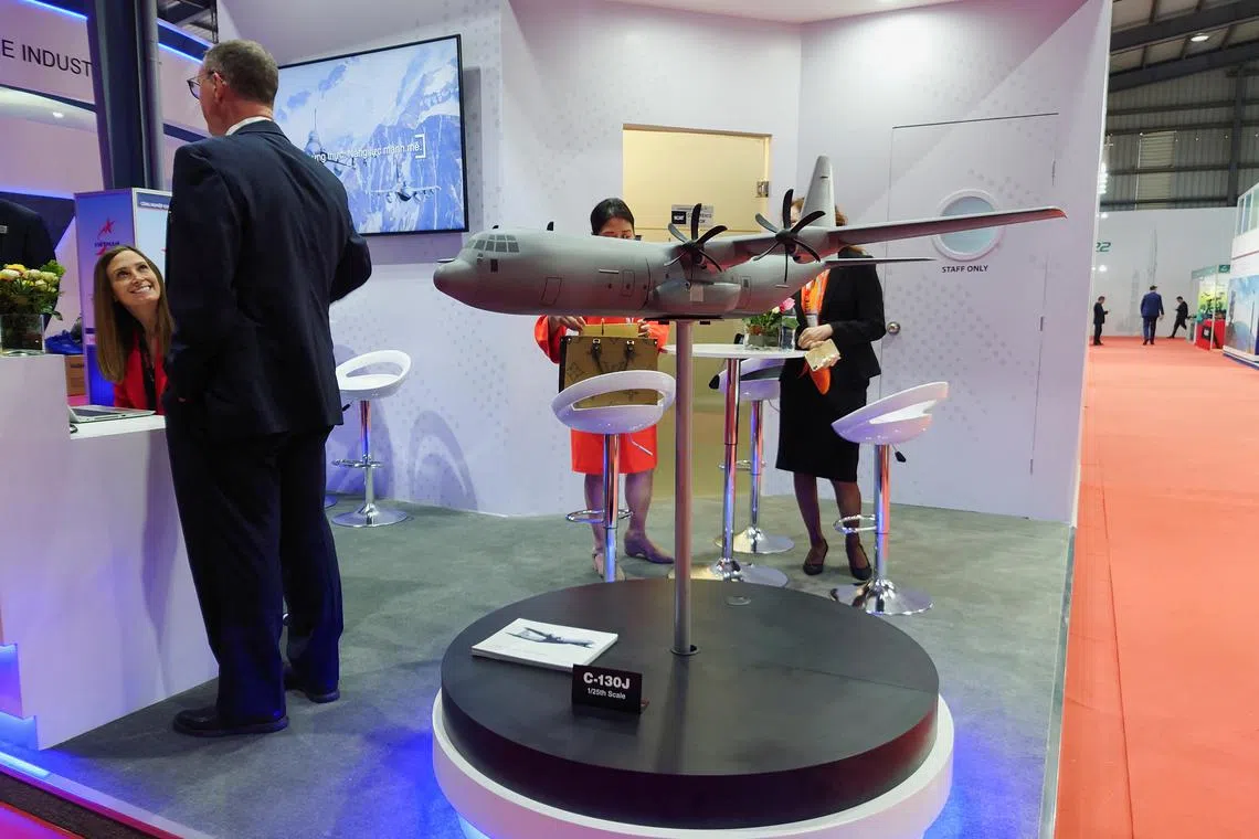 A model of Lockheed Martin’s C-130J military transport aircraft displayed at the Vietnam International Defence Expo 2022 in Hanoi on Dec 8, 2022.