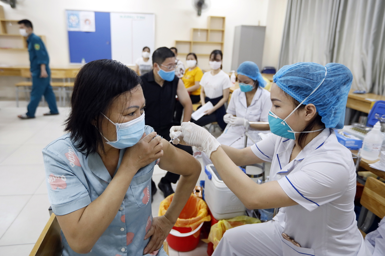 A woman receives a Covid-19 vaccine in Hanoi, Vietnam on Oct 7, 2021.