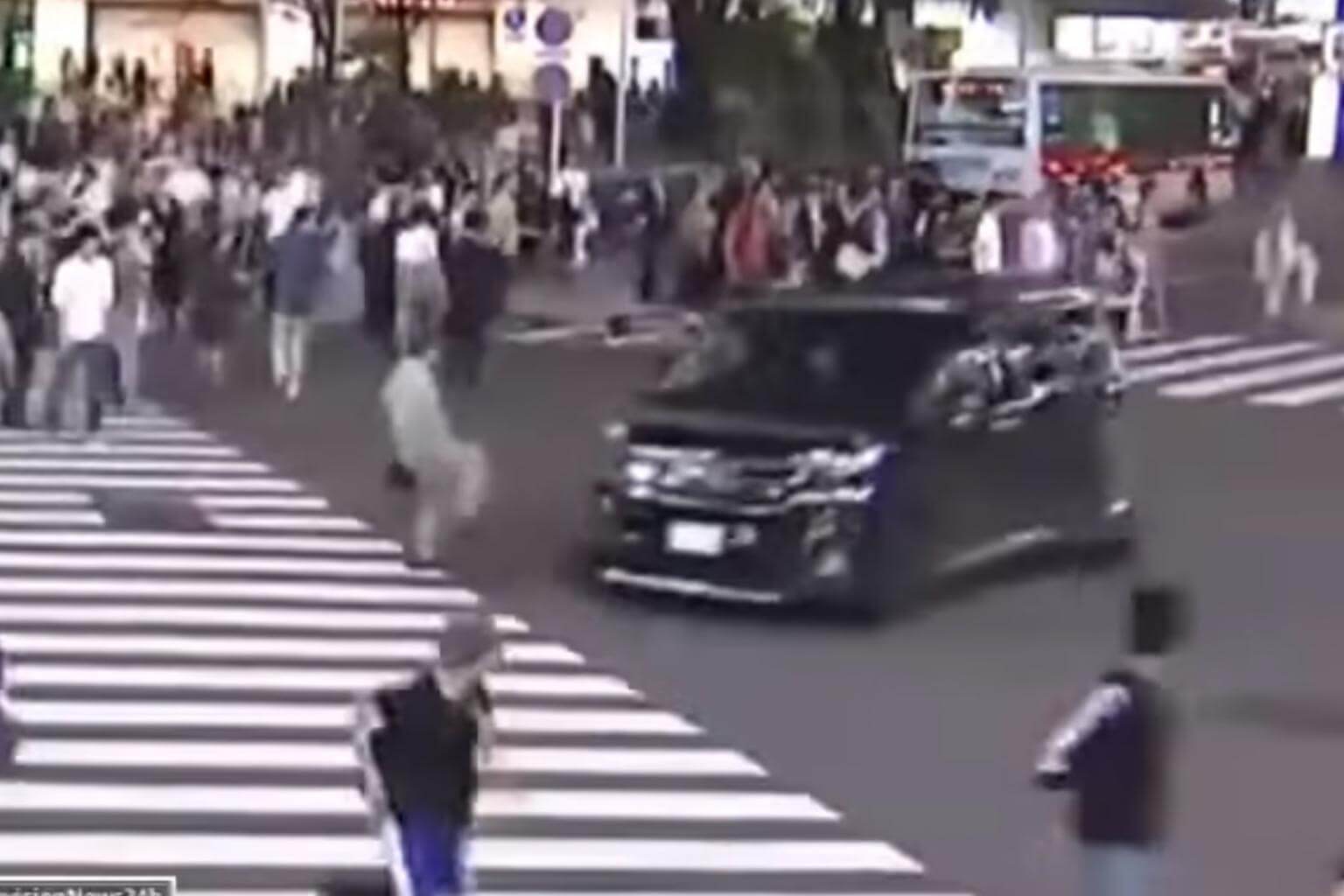 Van speeds through crowded Shibuya Crossing in police chase, gets kicked by pedestrian