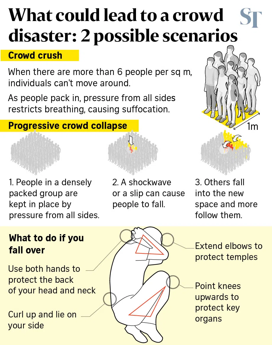 Mr Paul Wertheimer, a crowd safety expert based in Los Angeles, said: “It does not matter how big you are, how strong you are. If you get caught in a crush, everything is beyond your control.”