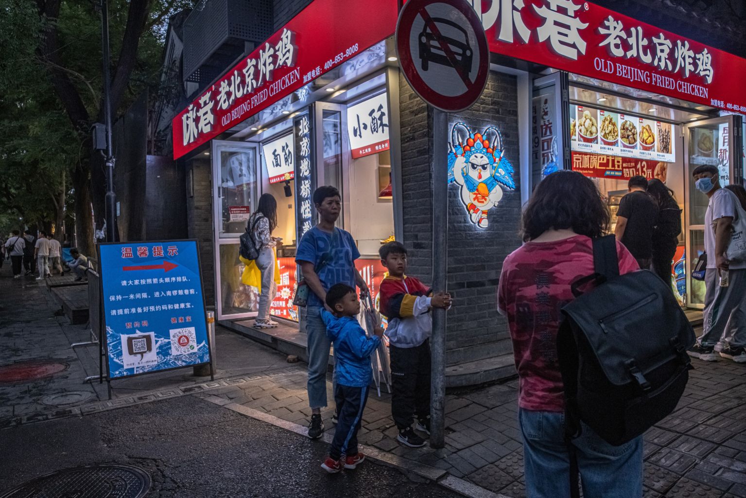 A woman with her children in a Beijing neighbourhood on May 31, 2021.